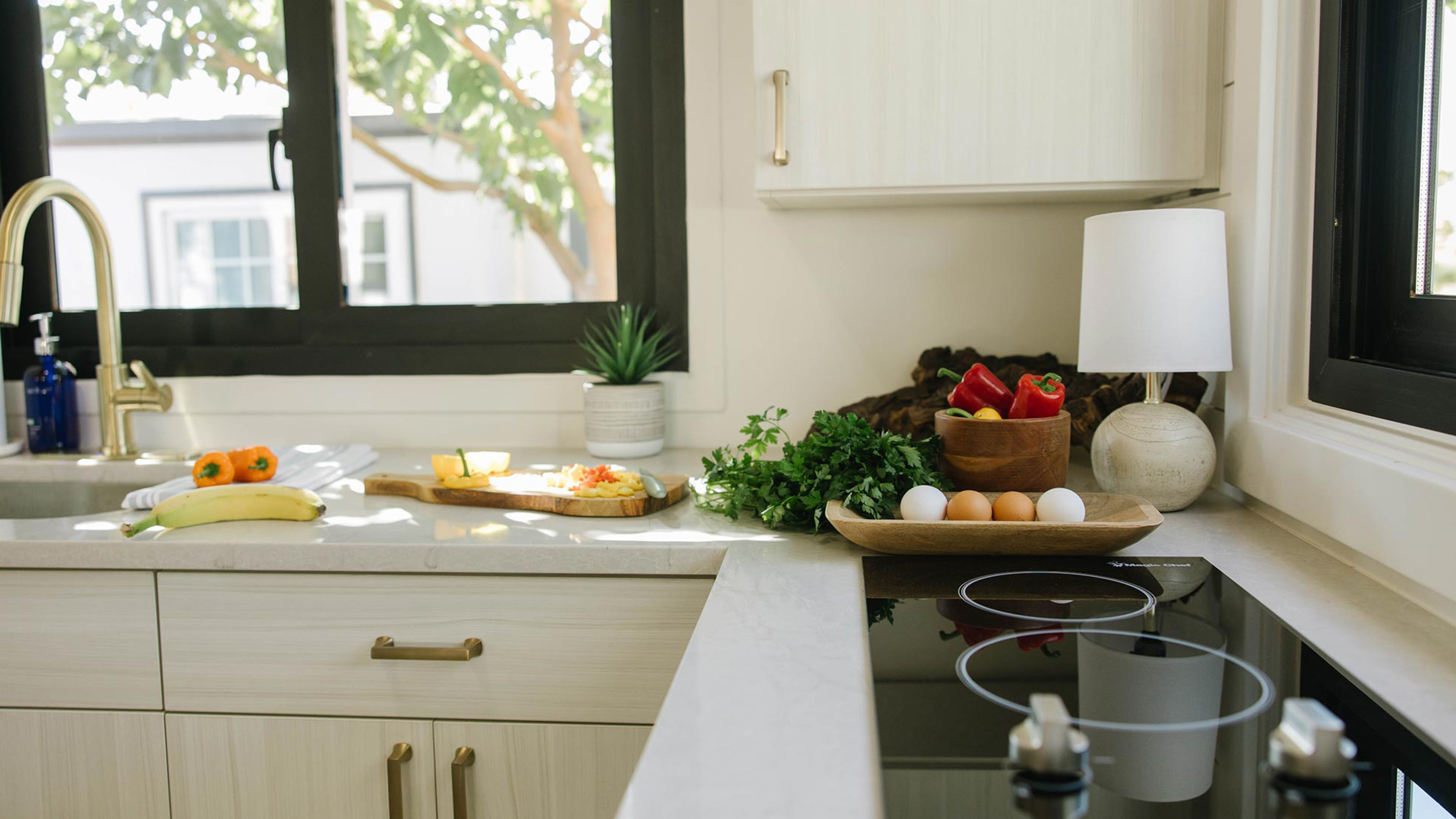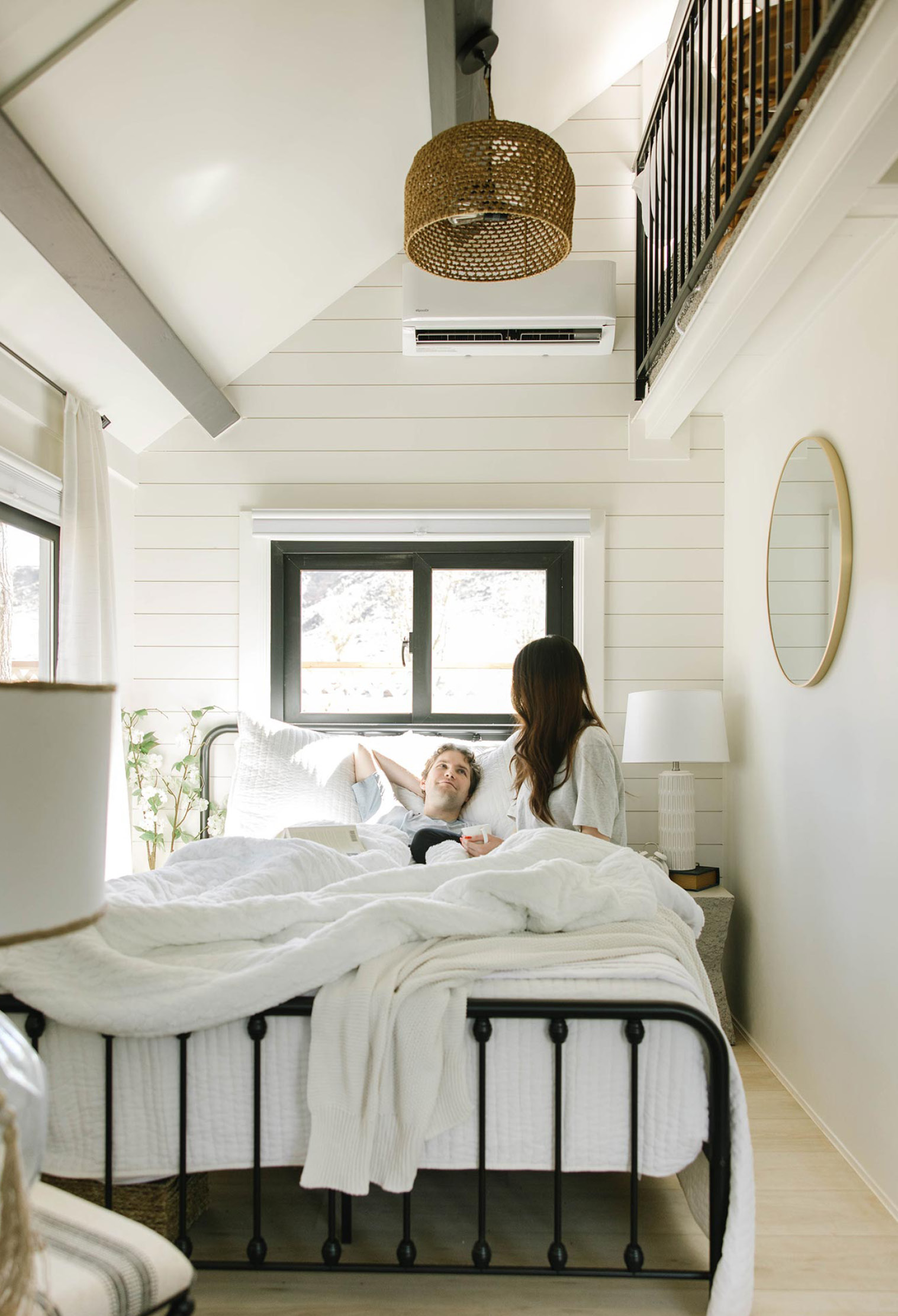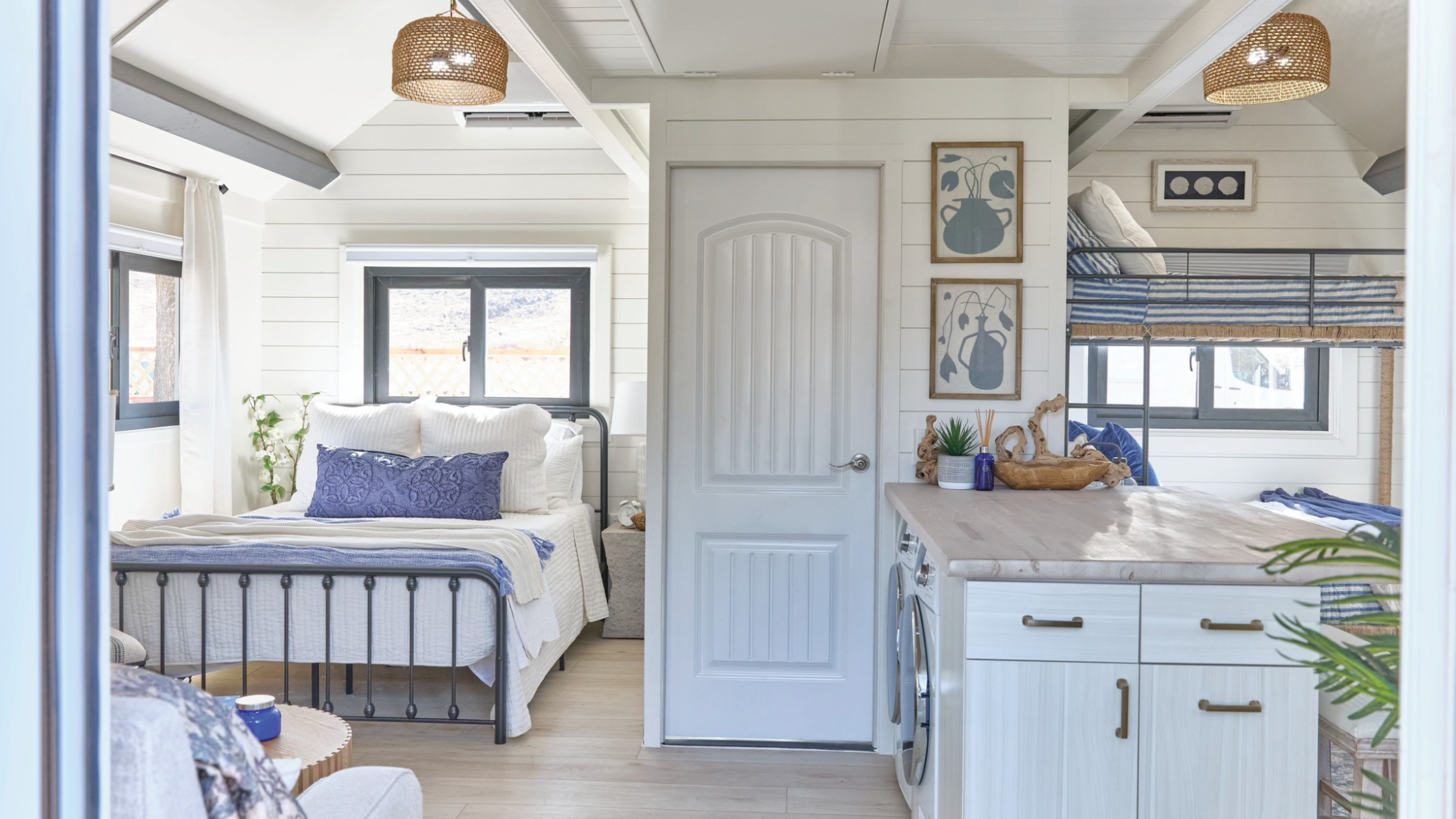 Inside, the open floor plan includes a bright living area, full kitchen, spacious bathroom, and a lofted sleeping spacethat adds over 120 sq ft of flexible room for guests or storage. Large windows and vaulted ceilings create an airy atmosphere that feels far larger than its footprint.